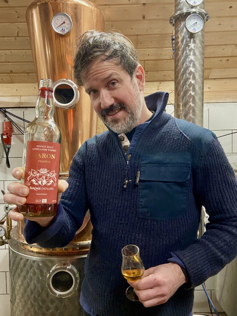 Jop van ‘Stoken met Jop’ heeft genen met een hoger alcoholpercentage. Vader en moeder startten een speciaalbierbrouwerij (met restaurant) in Oijen, waar ook een stookketel ter plaatse was. “Zo ontstond mijn passie voor distilleren. Ik ken Roene van de distillateursopleiding in België. We hebben samen tal van dranken gestookt en geproefd, waaronder een gave eau de vie van kweepeer!” De verkoop van Baron-whisky is Jop toevertrouwd, want aan kennis en enthousiasme geen gebrek.