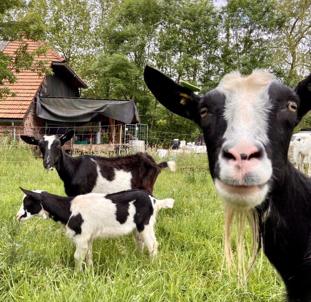 O ja, vanwaar die geiten op de foto? Die beschouwen wij als onze mascottes. Zij eten de bostel op, het restproduct dat overblijft na distillatie. Een gezond graanpapje, want nog altijd rijk aan vezels en eiwitten. Onze geiten gaan er goed op. De oplettende kijker ziet het voor-ons-circulaire dier ook op het etiket, dat vonden we wel gepast!